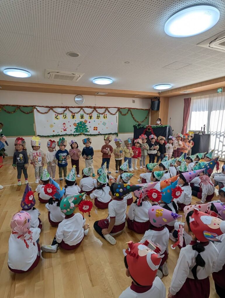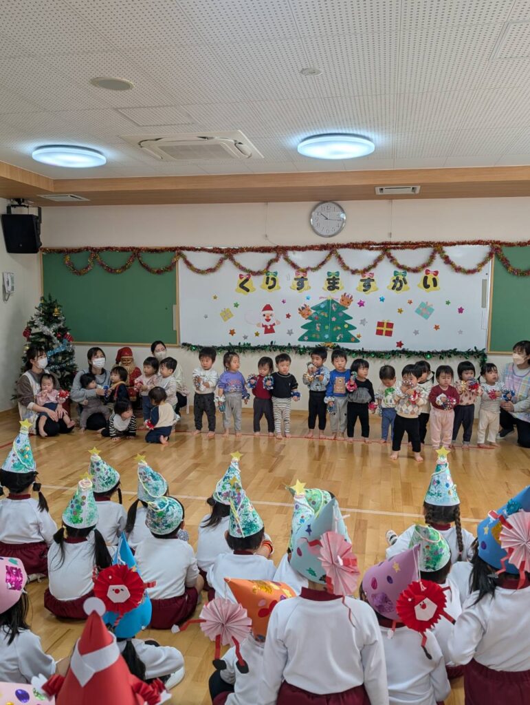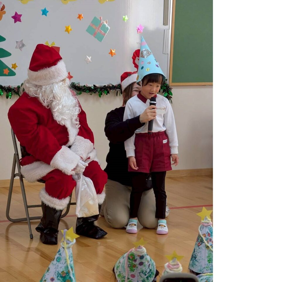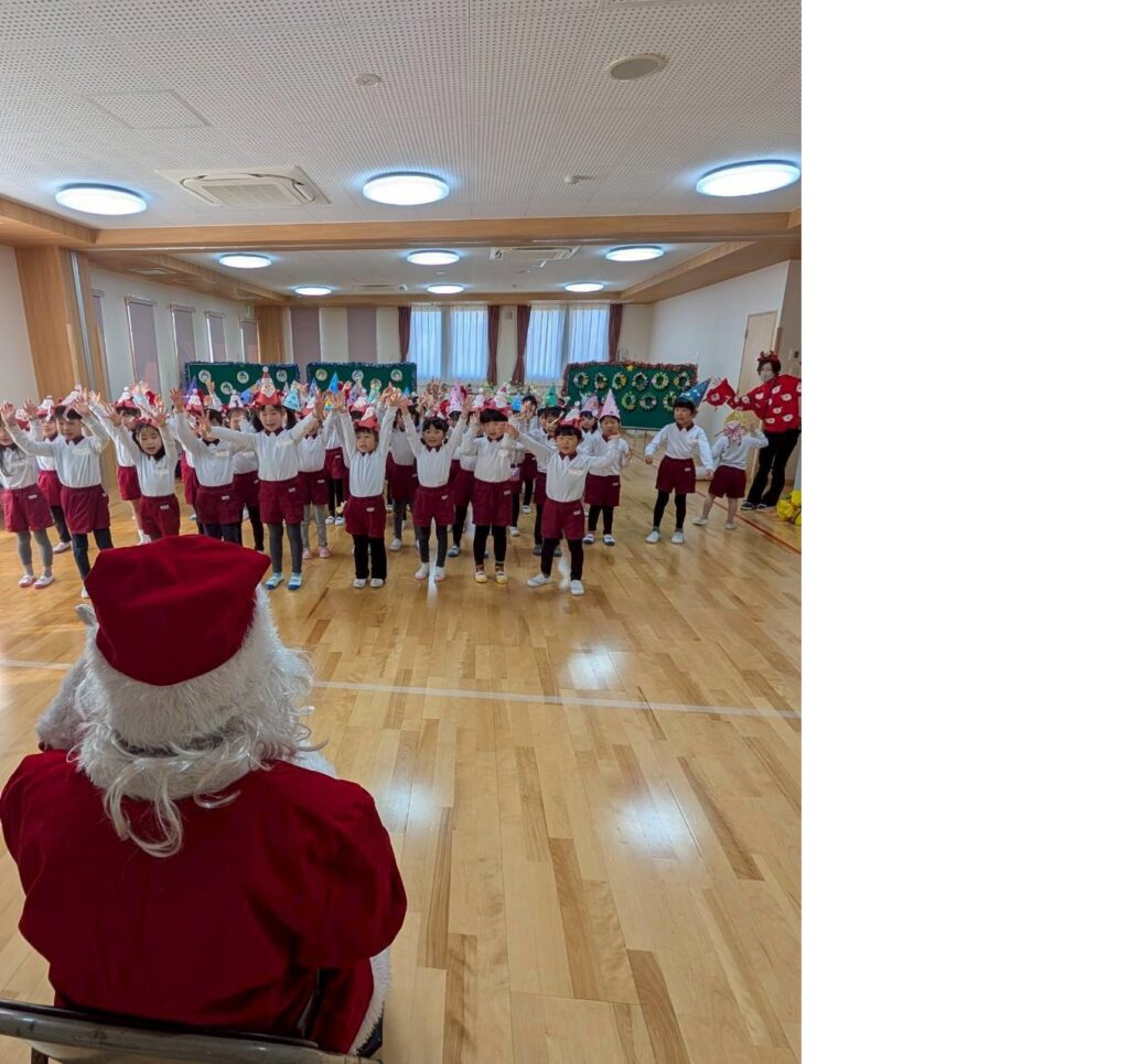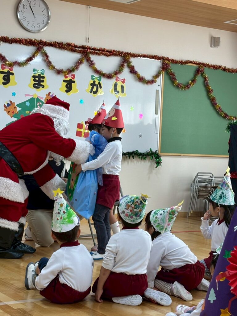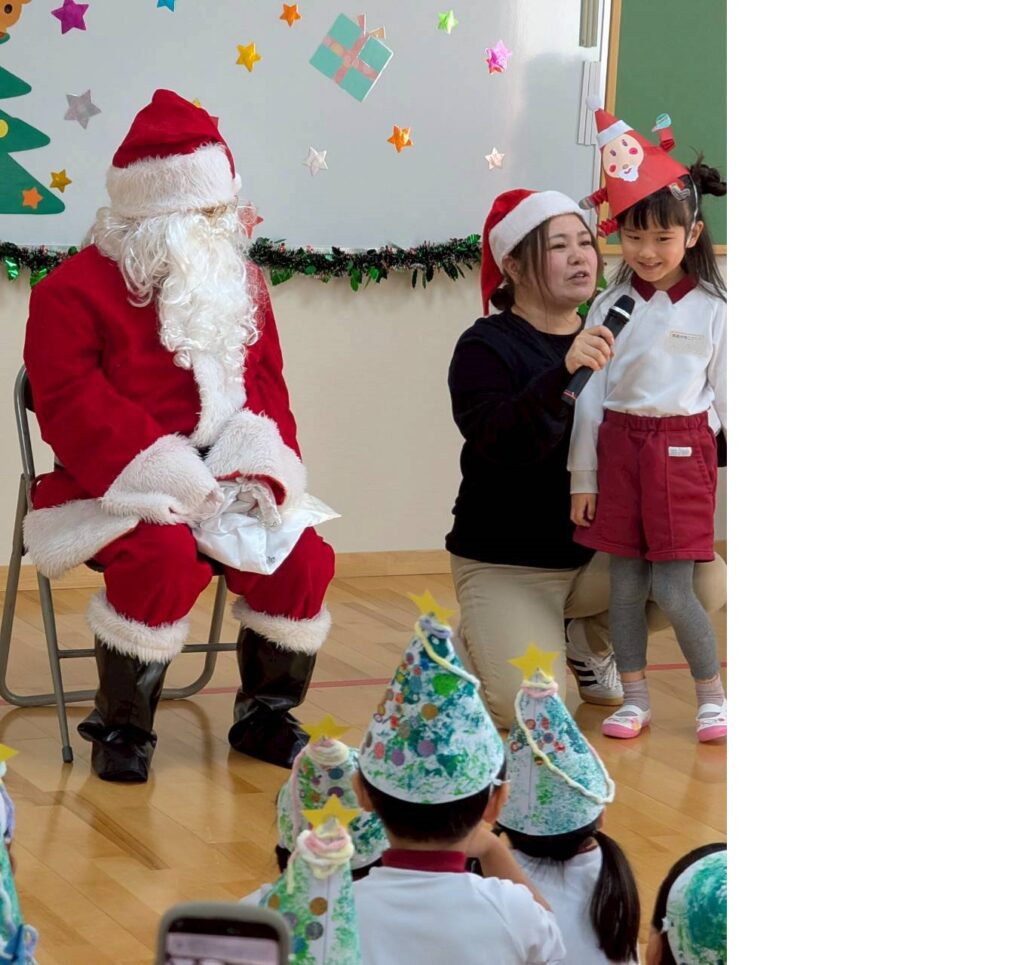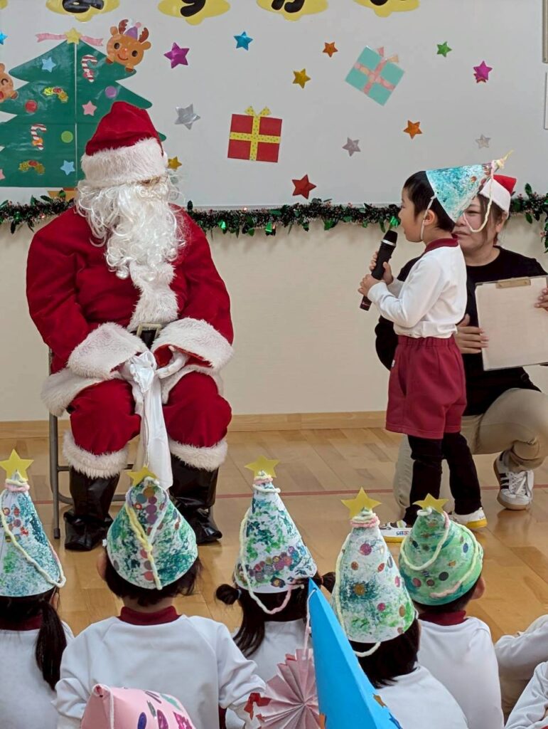 各クラス代表のお友達がサンタさんへ質問をしたり、プレゼントをもらったり、歌を歌ったりして楽しい時間を過ごしました☆
