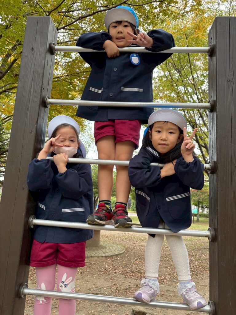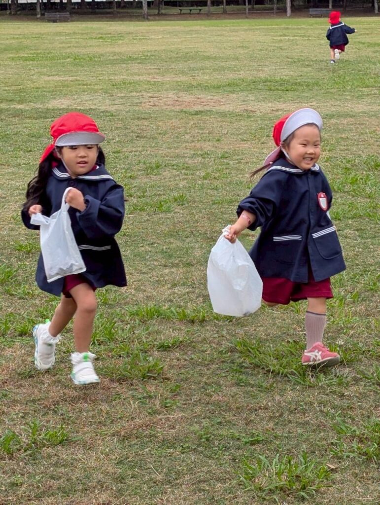 広い公園で友達と思い切り走ったり、木々の中を散策しながらどんぐりを拾ったりと、戸外でのびのび身体を動かして遊んできました(^^)